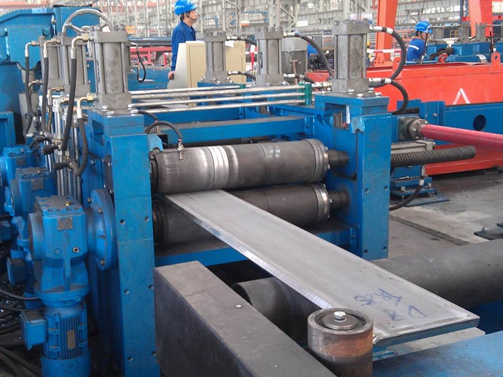 板肋双面坡口铣边机主要由铣削动力头、上下压辊装置、活动框架、牢靠框架、排削装置和滑台等部分组成。铣削动力头接纳牢靠方法,55Kw铣头,动力头水平安排,主轴转速无级可调,铣销刀盘为成型刀盘,一次完成直边和上下坡口加工。